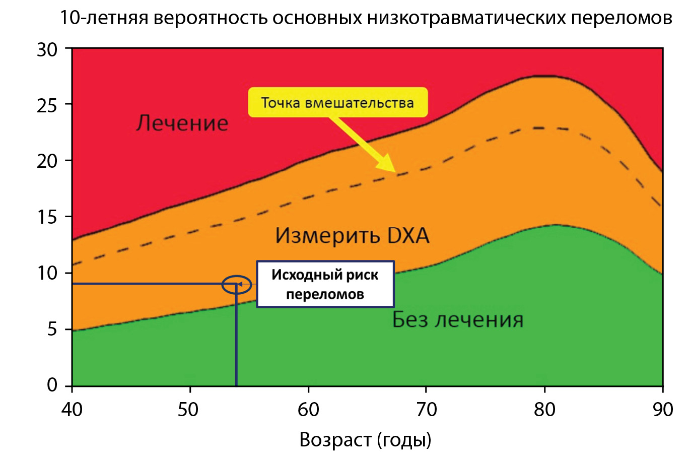 Рисунок 4. Исходный риск основных низкотравматических переломов