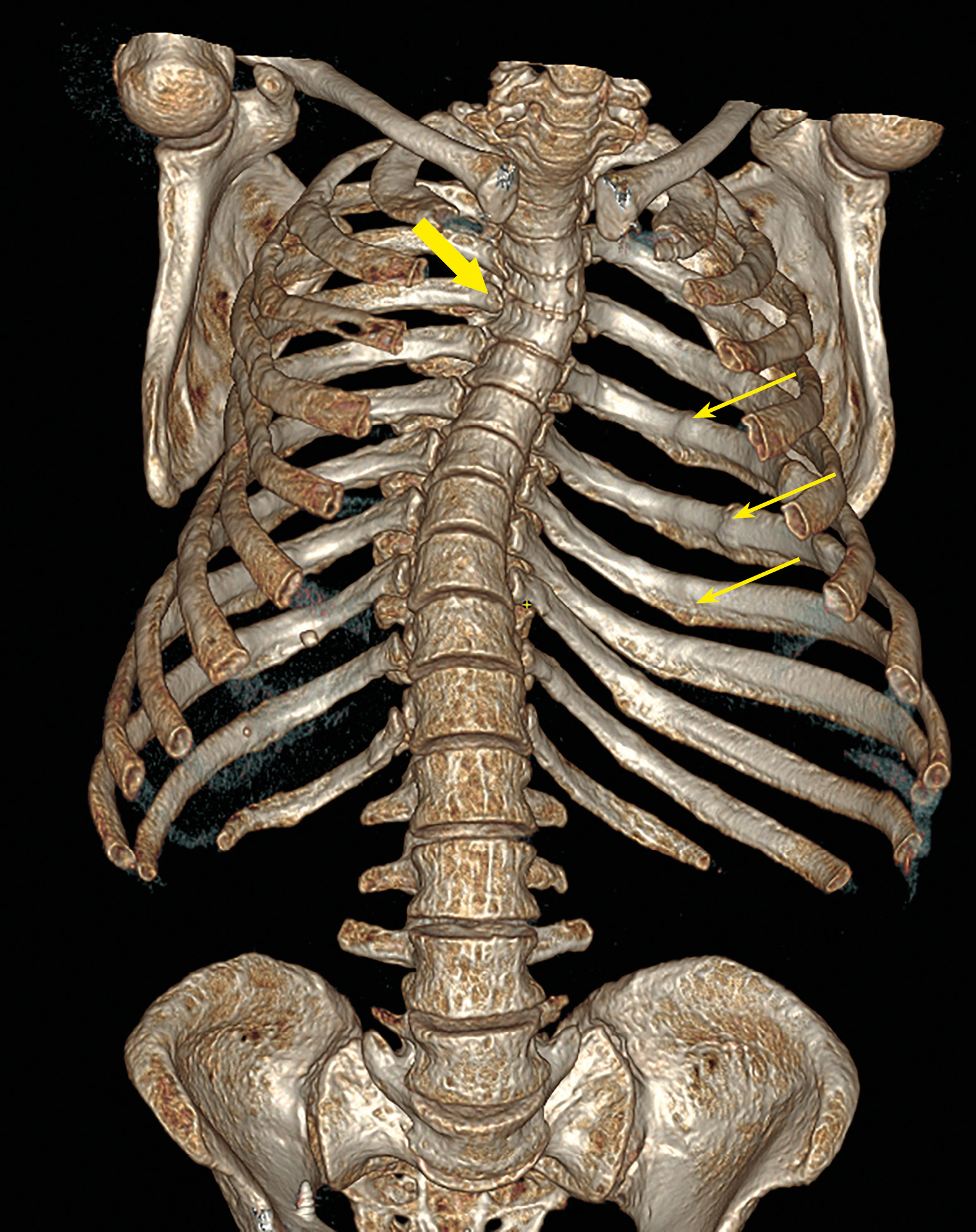 4. Рисунок 4. Пациентка П. КТ-исследование позвоночника от 2023 г. Трехмерная реконструкция. | |