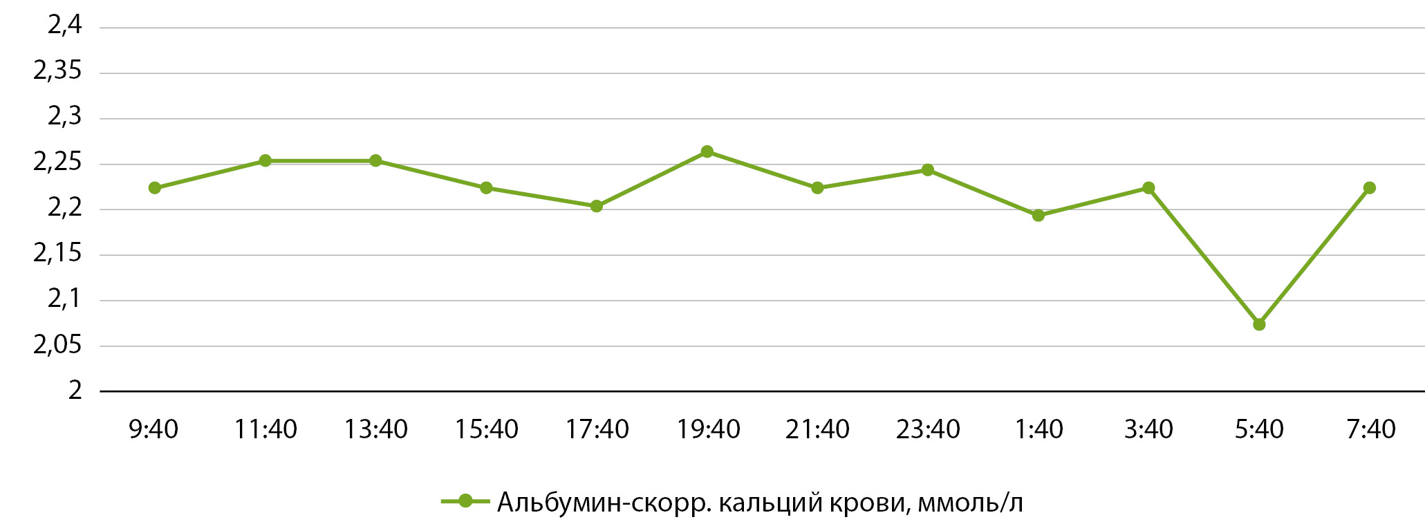 Рисунок 2. Суточный профиль кальциемии у пациентки С.