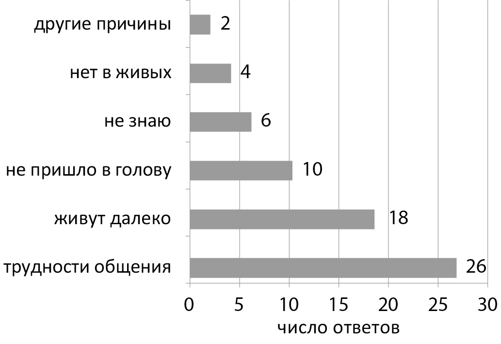 Причины, по которым студенты не оценивали риск у своих наиболее пожилых родственников, приведены на диаграмме (студент мог дать несколько ответов).