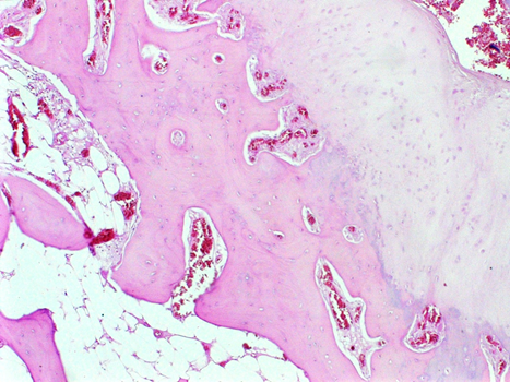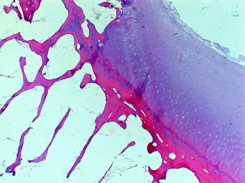 Рисунок 3. Микропрепарат мыщелка большеберцовой кости. Гематоксилин-эозин. х20.